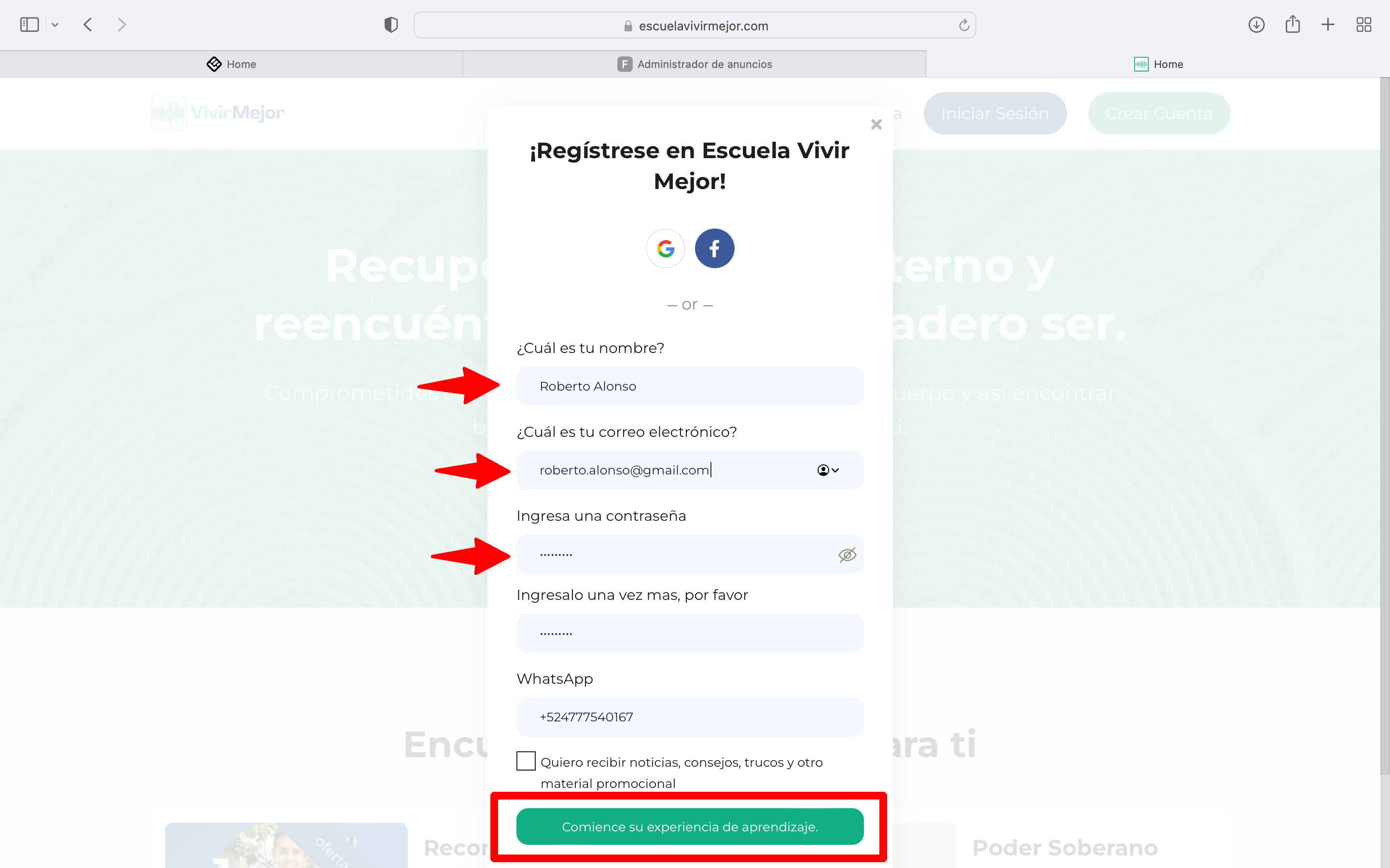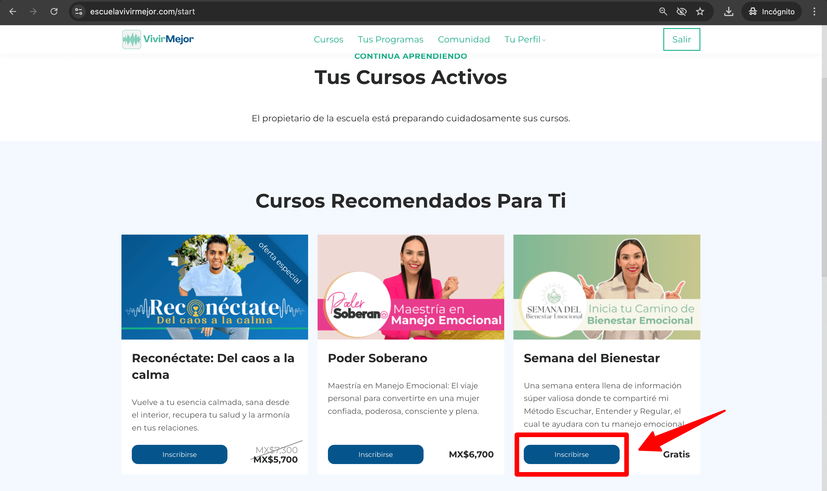 PASO #1: Da click en el botón "Entrar a la Escuela Vivir Mejor"